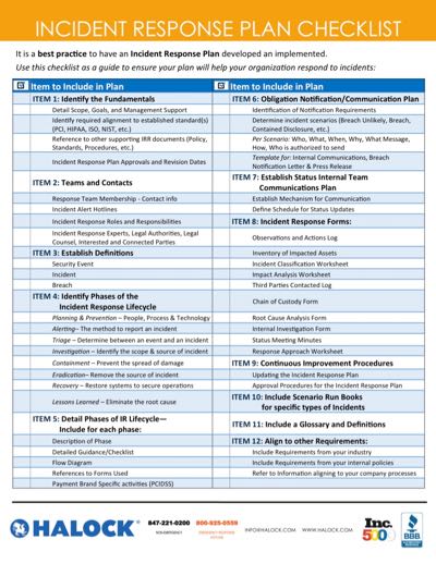 - First Responder Training and IR Team Training or Tabletop Exercises